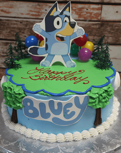 Bluey theme cake. Figures are subject to change without notice.