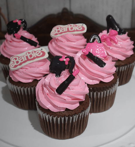 Pink buttercream frosting with Barbie theme.