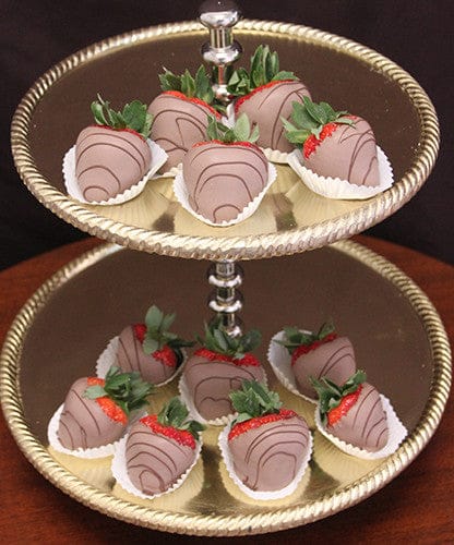 Milk Chocolate covered strawberries with dark drizzle.