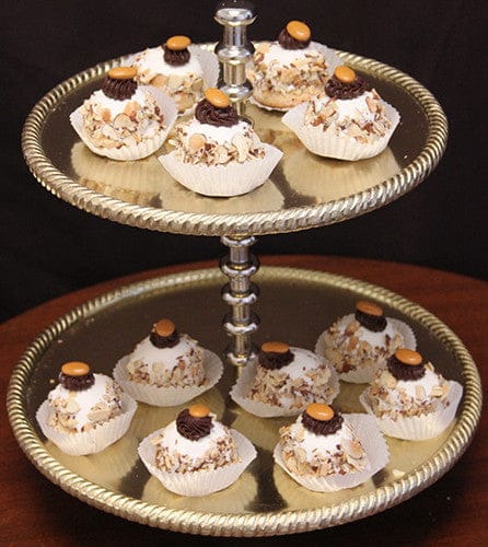 Macaroon cookie with mascarpone mousse dipped in white chocolate. Finished with sliced almonds, chocolate buttercream rosette and an amaretto bean.